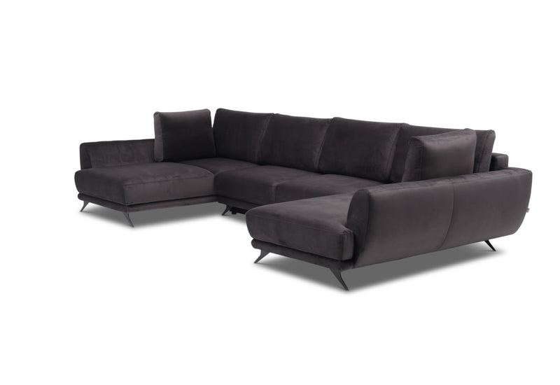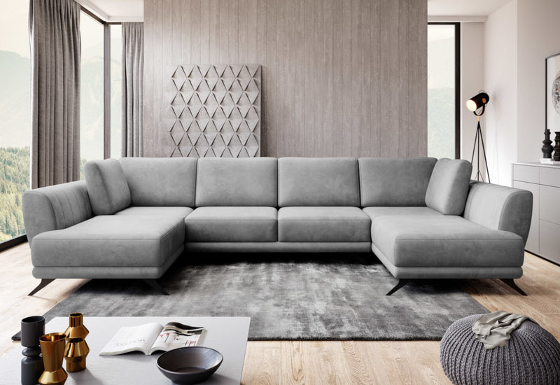 Rozkladacia sedacia súprava do U CORAL. Elegantná línia v modernom vzhľade. Rám sedačky je vyrobený z kvalitných materiálov. Komfortné sedenie zaistí výplň HR peny v kombinácii s pružinami typu faliste. Výhodou je rozkladací mechanizmus, vďaka ktorému jednoducho vytvoríte miesto na prespanie. Súčasťou je úložný priestor. Sedačka je vhodná do priestoru vďaka čalúnenej zadnej časti. Celú konštrukciu podopierajú vyššie nožičky. Vybrať môžete z viacerých farebných čalúnení.