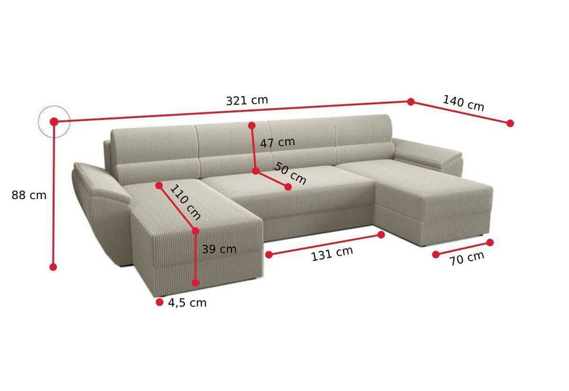 Rozkladacia sedacia súprava do U LEBI. Sedacia súprava vás na prvý pohľad zaujme svojim jednoduchým dizajnom. Je vyrobená z kvalitných materiálov. Súčasťou sedačky je úložný priestor a rozkladací mechanizmus, vďaka ktorému ľahko premeníte sedačku na lôžko na príležitostné prespanie. Komfortné sedenie zaistí pohodlný sedák vyplnený PUR penou T30. Možnosť výberu z viacerých čalúnení.