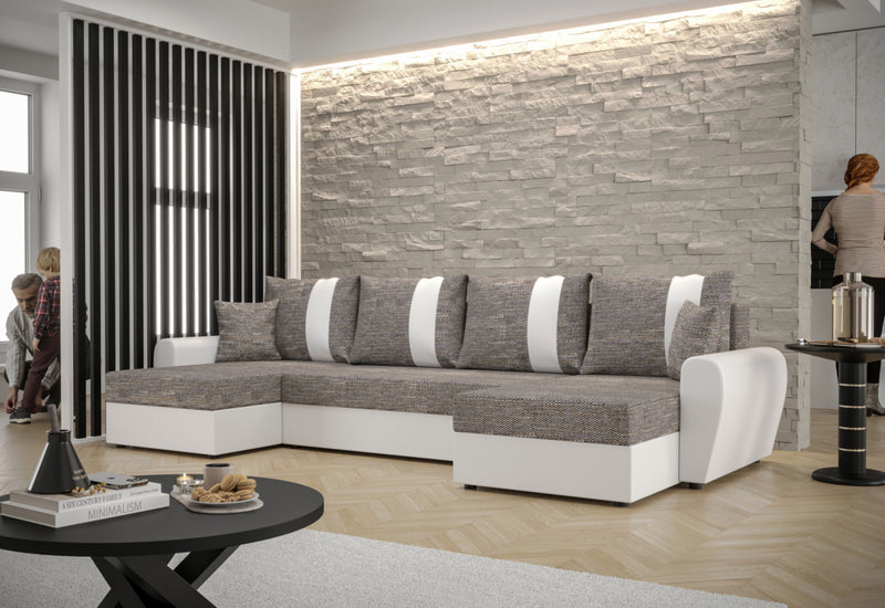 Rozkladacia sedacia súprava do U PAVOS. Sedacia súprava vás na prvý pohľad zaujme svojim jednoduchým dizajnom. Je vyrobená z kvalitných materiálov. Súčasťou sedačky je úložný priestor a rozkladací mechanizmus, vďaka ktorému ľahko premeníte sedačku na lôžko na príležitostné prespanie. Komfortné sedenie zaistí pohodlný sedák vyplnený penou T30. Maximálne pohodlie zaistia štyri oporné vankúše a dva dekoračné. Možnosť výberu z viacerých čalúnení.