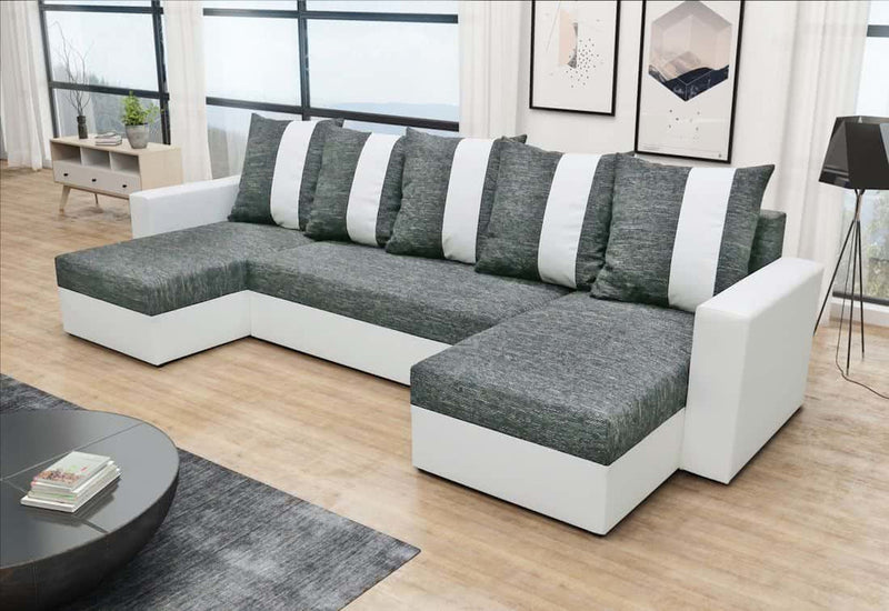 Rozkladacia sedacia súprava GRASSA U. Vyzerá elegantne a poskytuje dostatok priestoru. Pohovku ľahko rozložíte na priestranné lôžko pre príležitostné prespanie. Súčasťou je tiež úložný priestor. Eleganciu podčiarkujú chrómované kovové nožičky a zaujímavé opierky. Výplň sedačky tvoria pružiny typu faliste v kombinácii s penou T30. Tá poskytuje pohodlie pri sedení a spaní. Sedačka je čalúnená aj vzadu, možno ju teda umiestniť aj do priestoru. Vybrať si môžete z viac kombinácií dekorov.