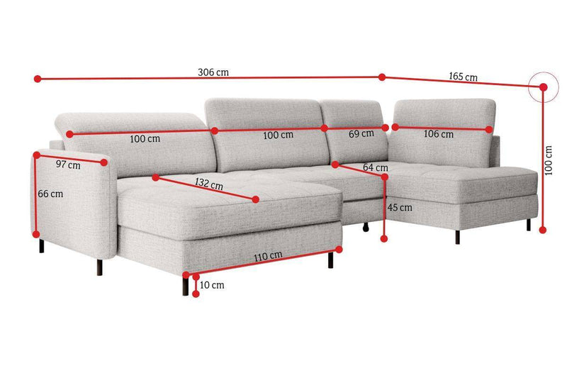 Rozkladacia sedačka do U NERTO, 306X100X165, raguel 40, ľavá -  - 0