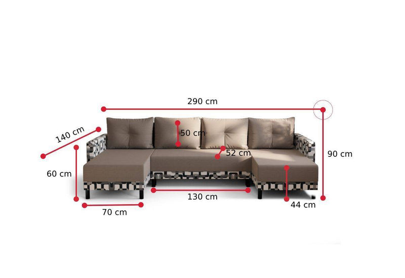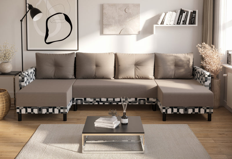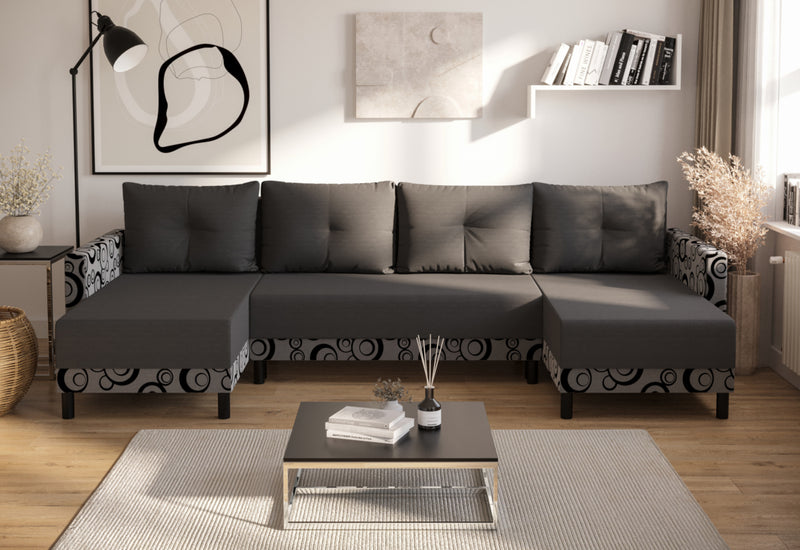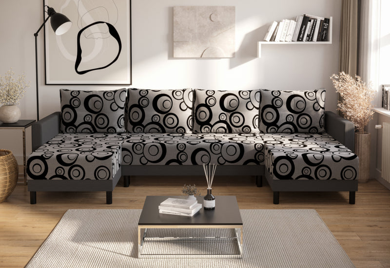 Rozkladacia sedačka do U REGON. Sedacia súprava vás na prvý pohľad zaujme svojim extravagantným dizajnom. Je vyrobená z kvalitných materiálov. Súčasťou sedačky je úložný priestor a rozkladací mechanizmus, vďaka ktorému ľahko premeníte sedačku na lôžko na príležitostné prespanie. Komfortné sedenie zaistí pohodlný sedák vyplnený PUR penou T-30 a príjemná látka, ktorou je sedačka potiahnutá. Štyri veľké vankúše zaistia maximálne pohodlie. Celú konštrukciu podopierajú nízke nožičky. Na výber z viacerých čalúnení.