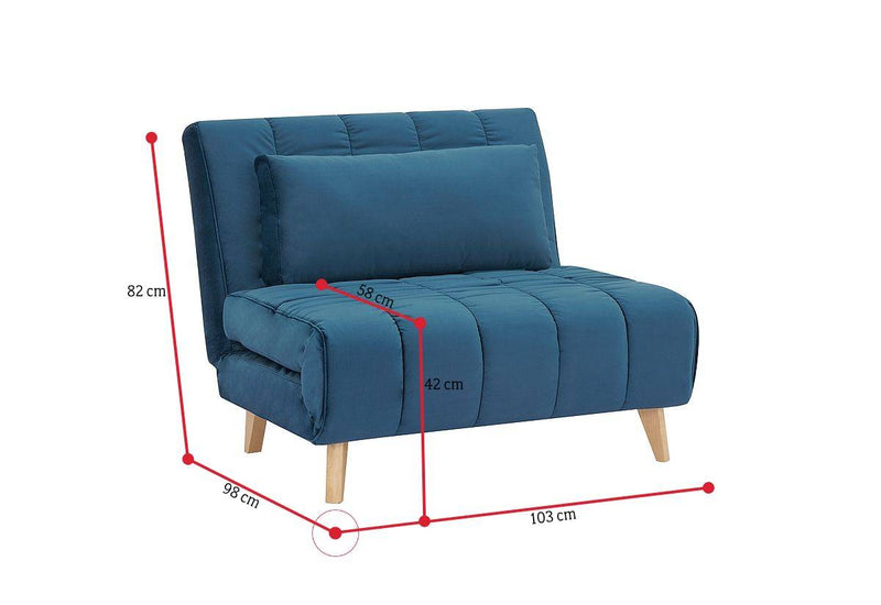 Rozkladacie kreslo WILDY Velvet. Kreslo stojí na vyšších nožičkách, ktoré jej dodávajú eleganciu. Kvalitná poťahová látka je na dotyk príjemná. Kreslo je celočalúnené. Drevený korpus zaisťuje stabilitu. Kreslo možno rozložiť a získať tak relaxačné alebo spacie lôžko.