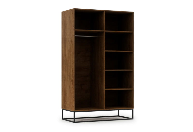 Šatníková skriňa AVARIO. Elegantná šatníková skriňa v industriálnom štýle je vyrobená z kvalitného materiálu. Kovová konštrukcia dodáva šatníku stabilitu a vzdušnosť. Šatníková skriňa ponúka dostatok úložného priestoru, je vybavená policami a šatníkovou tyčou. Výber dekorácie.