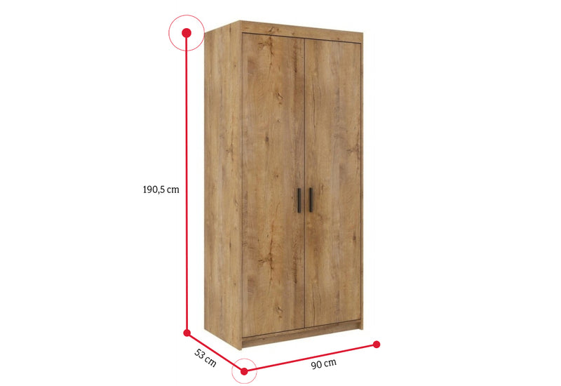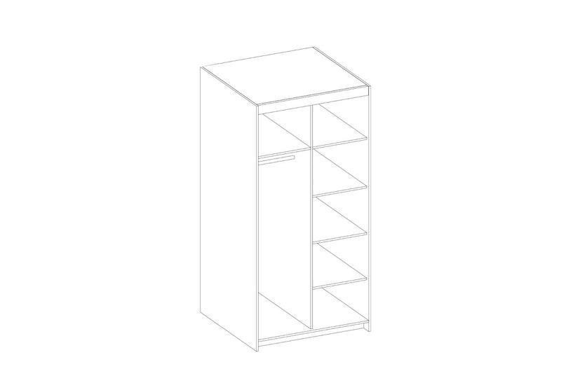 Šatníková skriňa ELLENA 2D. Je vyrobená z vysokokvalitného materiálu s priemerom 1,6 cm. Úložný priestor pozostáva z piatich políc a veľkej priehradky so šatníkovou tyčou. Dvojdverová skriňa je k dispozícií v troch prírodných dekoroch. Dvere skrinky majú malé úchytky.