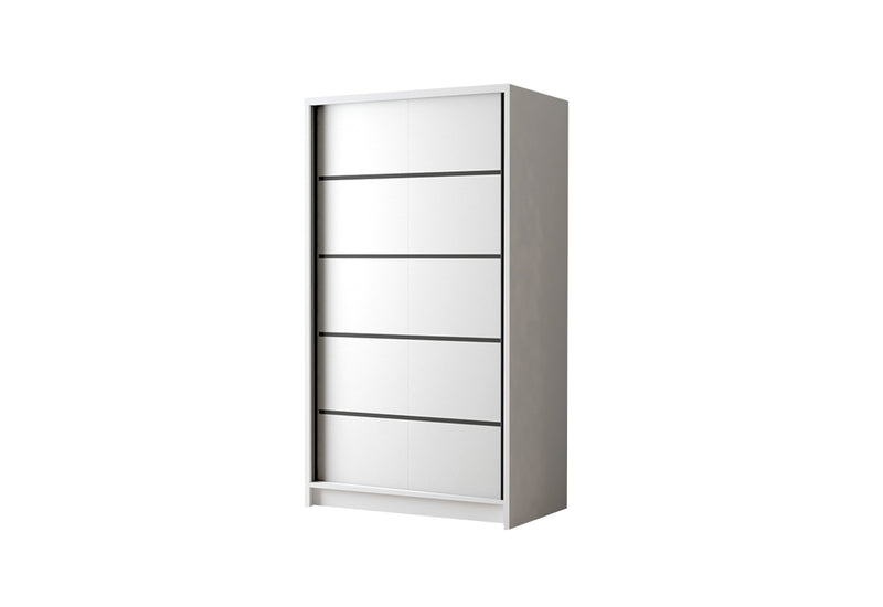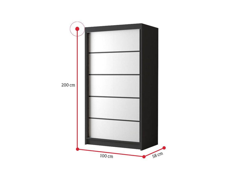 Šatníková skriňa LIMIO 2. Zaujme vás jednoduchými líniami moderného vzhľadu. Vyrobená je z kvalitného materiálu s hrúbkou 1,6 cm. Za posuvnými dverami sa ukrýva úložný priestor. Poskytne vám priestranné police a šatníkovú tyč. Na výber je k dispozícii niekoľko dekorov.