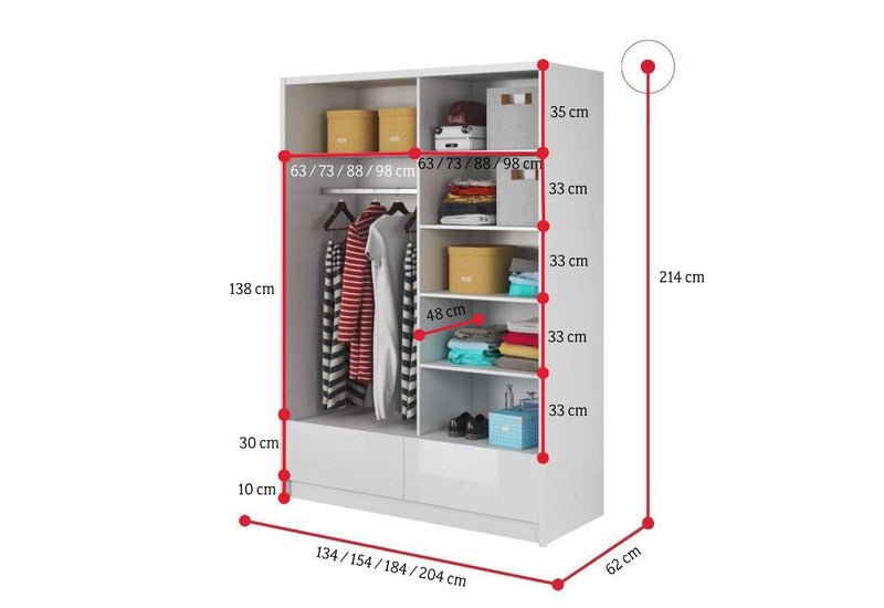 Šatníková skriňa MARINEL 2 (čierna/čierna lesk / 134)