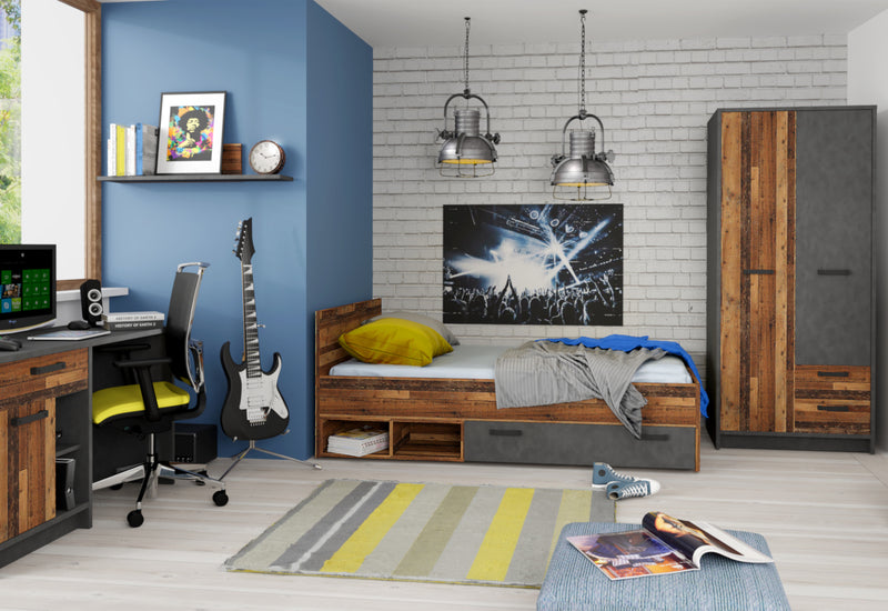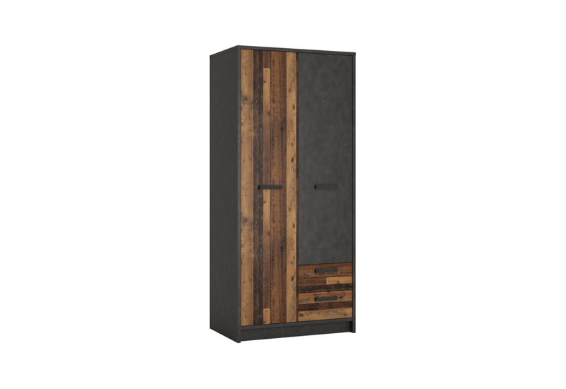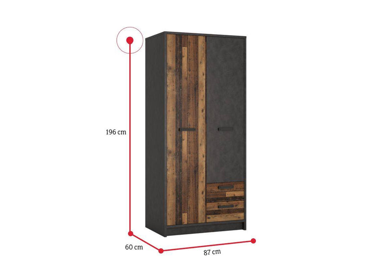 Šatníková skriňa NUBUS. Šatníková skriňa Vás zaujme jednoduchými líniami moderného štýlu. Vyrobená je z kvalitného materiálu. Vnútorné usporiadanie dvojdverovej skrine ponúka úložný priestor v podobe políc a šatníkovej tyče. Súčasťou skrine sú dve priestranné zásuvky. Pre ľahkú manipuláciu opatrená úchytmi. Vďaka svojmu vzhľadu nájde miesto v každom interiéri. Možnosť kombinovať s ďalšími produktmi z radu NUBUS.