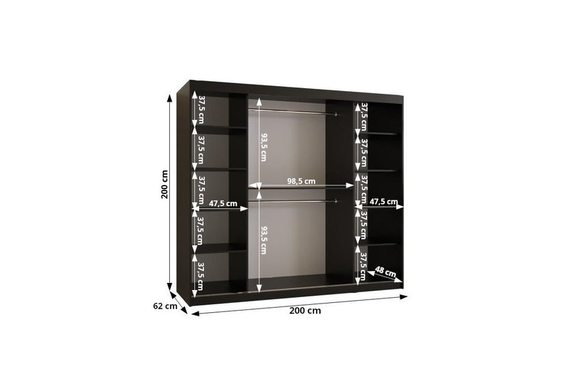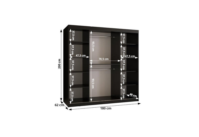 Šatníková skriňa RENA 2. Zaujme jednoduchým spracovaním v modernom štýle. Vyrobená je z kvalitného materiálu, ktorý je opatrený ABS hranami. Chráni tak materiál pred mechanickým poškodením a vlhkosťou. Súčasťou skrine je zrkadlo, ktoré je nielen praktickým, ale aj dizajnovým doplnkom. Šatníková skriňa poskytuje dostatok úložného priestoru v podobe dvoch šatníkových tyčí a políc. Dvierka majú úzke čierne úchytky na jednoduchšie otváranie. Možnosť voľby veľkosti šírky.