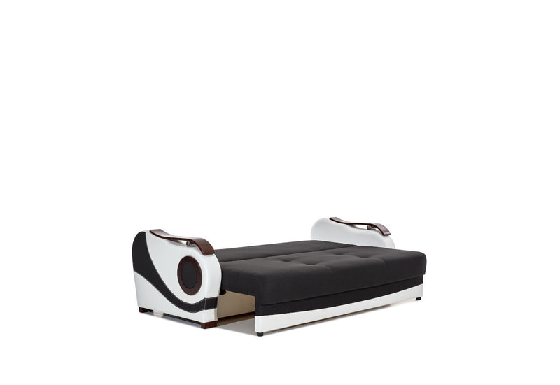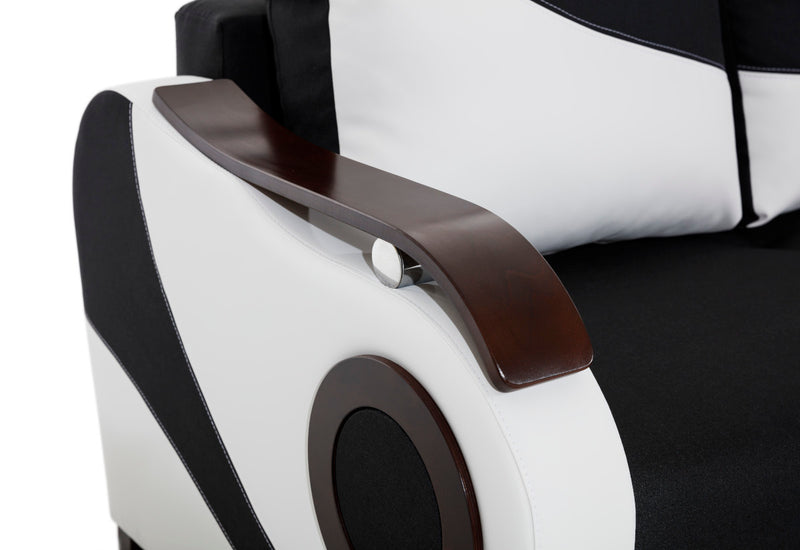 Sedacia zostava PORTORIKO. Vyzerá elegantne a poskytuje dostatok priestoru. Čalúnenie z príjemnej poťahovej látky a z ekokože pokrýva celú pevnú konštrukciu s jadrom z Bonellovými pružinami a PUR penou. Veľké množstvo miesta na sedenie ponúka v podobe dvoch kresiel a rozkladacej pohovky, ktorú ľahko premeníte na lôžko. Súčasťou je tiež úložný priestor. Sedacia súprava stojí na nízkych drevených nožičkách.