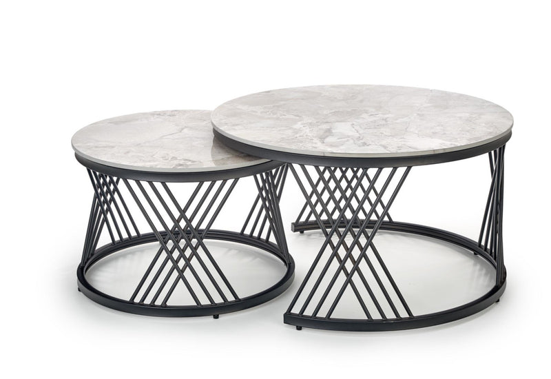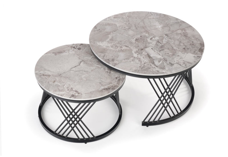 Set konferenčných stolíkov AMINGO, popolový mramor/čierna -  - 0