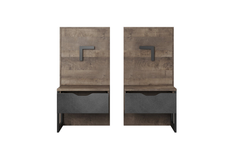 Set nočných stolíkov ARDELA. Sú vyrobené z kvalitného materiálu, ktorý je opatrený je ABS hranami. Tie chránia pred mechanickým poškodením a vlhkosťou. Stolíky poskytujú dostatok úložného priestoru v podobe zásuvky. Ako odkladaciu plochu môžete využiť hornú dosku stolíka. Na otváranie slúži obľúbený systém PUSH TO OPEN. Stolíky stoja na kovových nožičkách v čiernej farbe. Kombinovať môžete s ďalšími produktmi z radu ARDELA.