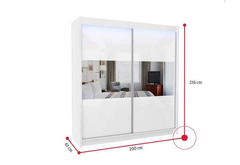 Skriňa s posuvnými dvermi a zrkadlom ROXANA, 200x216x61, biela -  - 0