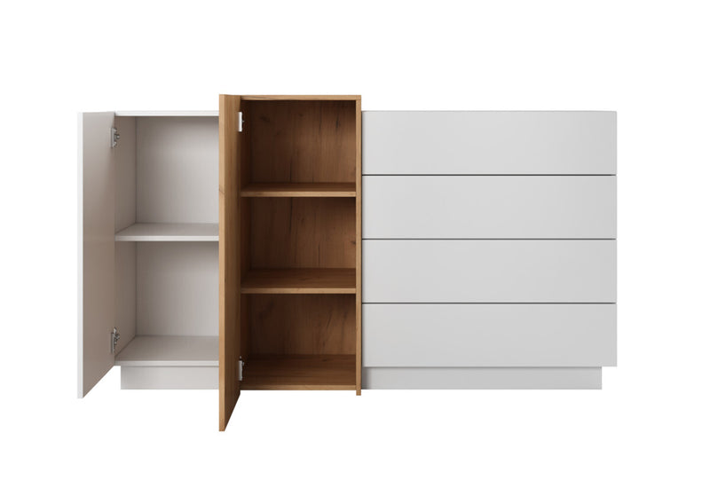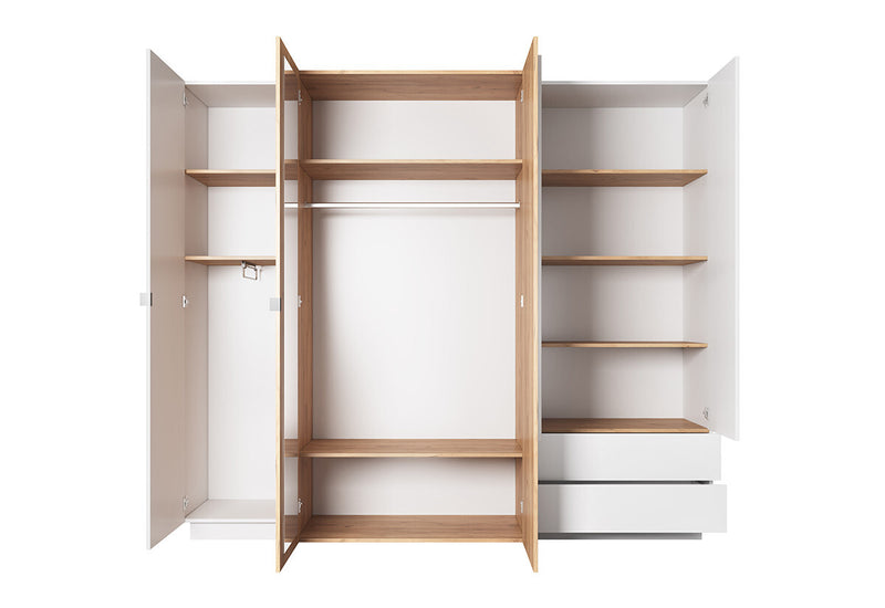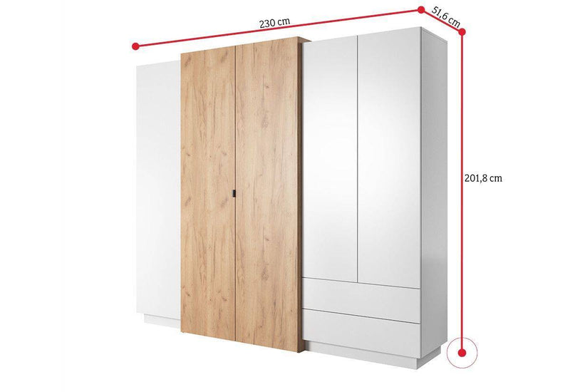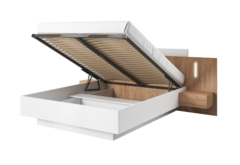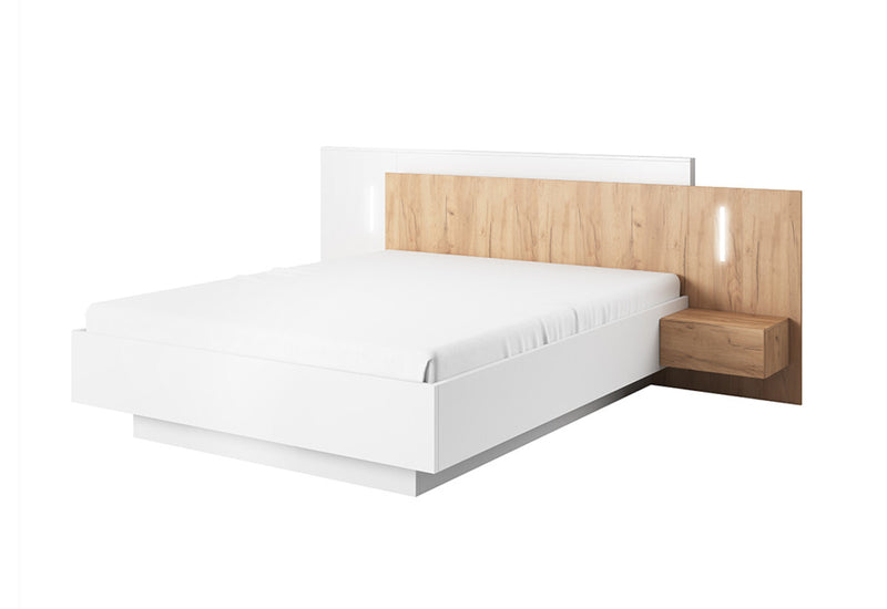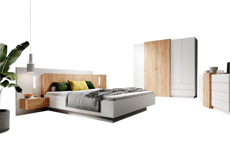 Spálňová zostava LAMU. Vyrobená je z kvalitných materiálov a vybavená ABS hranou. Tá chráni pred mechanickým poškodením a vlhkosťou. Skladá sa z manželskej postele s úložným priestorom a so spacou plochou vo veľkosti 160x200 cm, komody, šatníkovej skrine a dvoch nočných stolíkov. Šatníková skriňa má zrkadlo na jednej vnútornej strane dverí. Posteľ je vrátane LED osvetlenia a dodaná s roštom, bez matraca. Dvierka a zásuvky nemajú úchytky, otvárajú sa pomocou systému PUSH TO OPEN. Produkty je možné zakúpiť aj jednotlivo, čím si môžete spálňu poskladať podľa svojho uváženia.