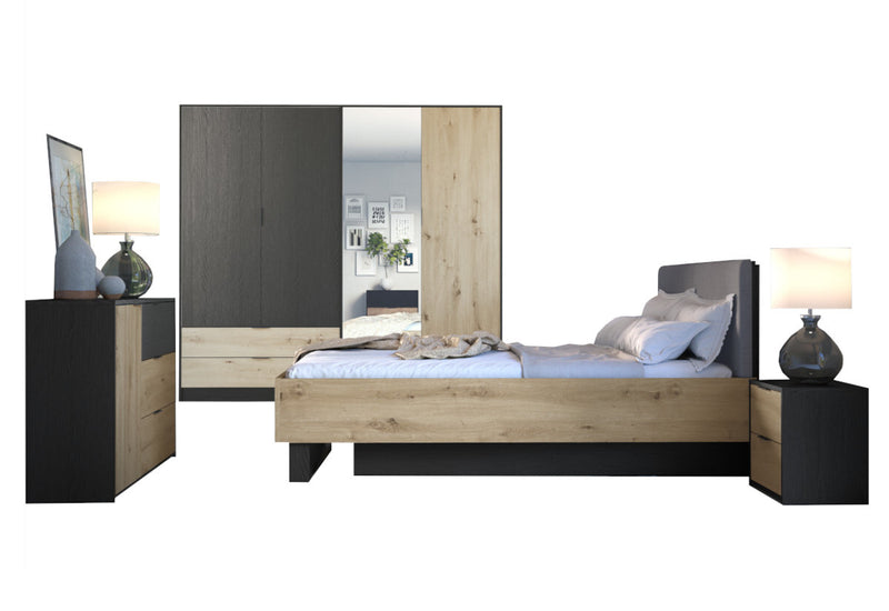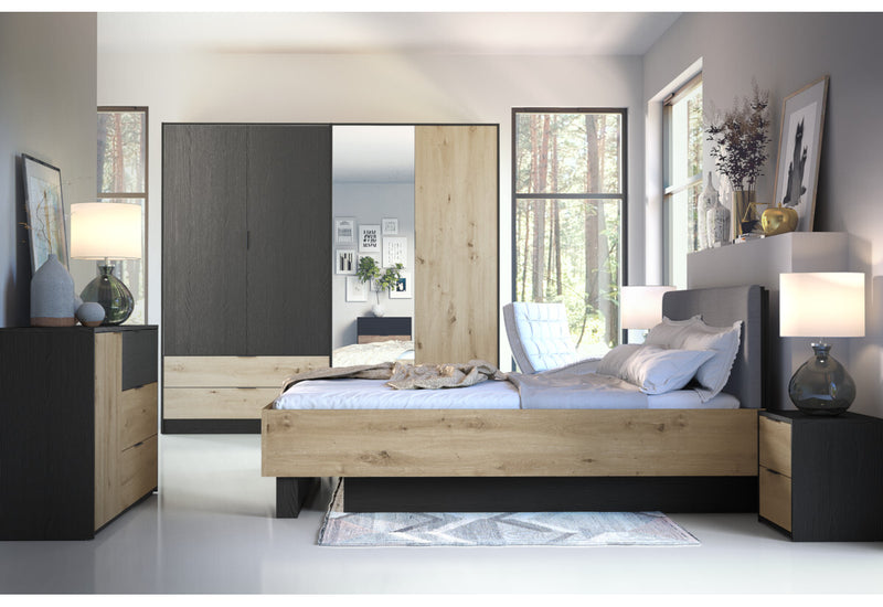 Spálňová zostava SALAS. Zostava Vás zaujme jednoduchými líniami moderného štýlu. Je vyrobená z kvalitného materiálu, ktorý je opatrený ABS hranou. ABS hrana chráni materiál pred mechanickým poškodením. Súčasťou spálňovej zostavy je šatníková skriňa, manželská posteľ, nočný stolík a komoda. Vďaka svojmu vzhľadu nájde miesto v každom interiéri. Produkt môžete doplniť ďalšími produktmi z radu SALAS.