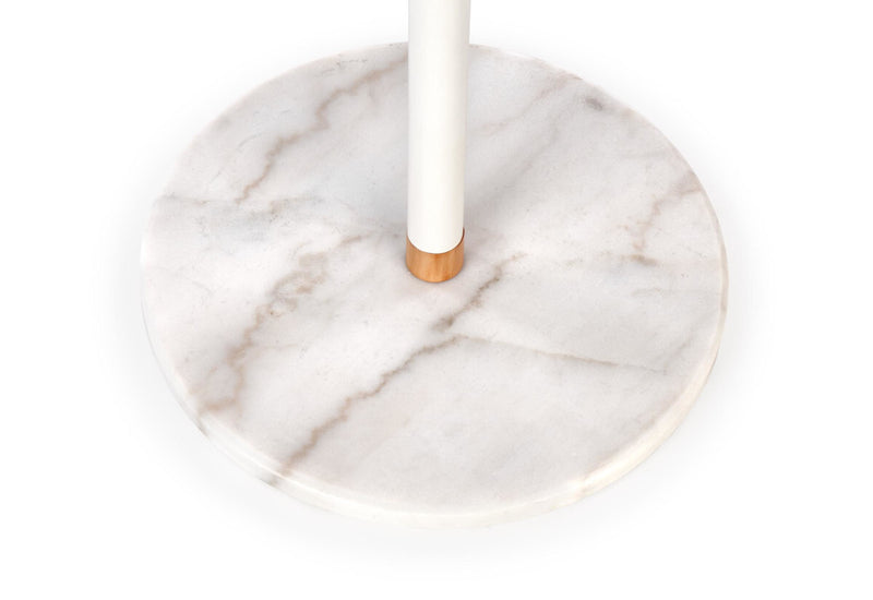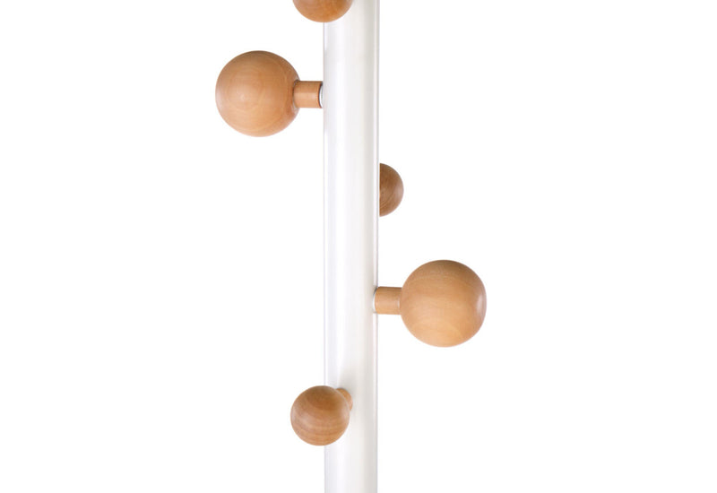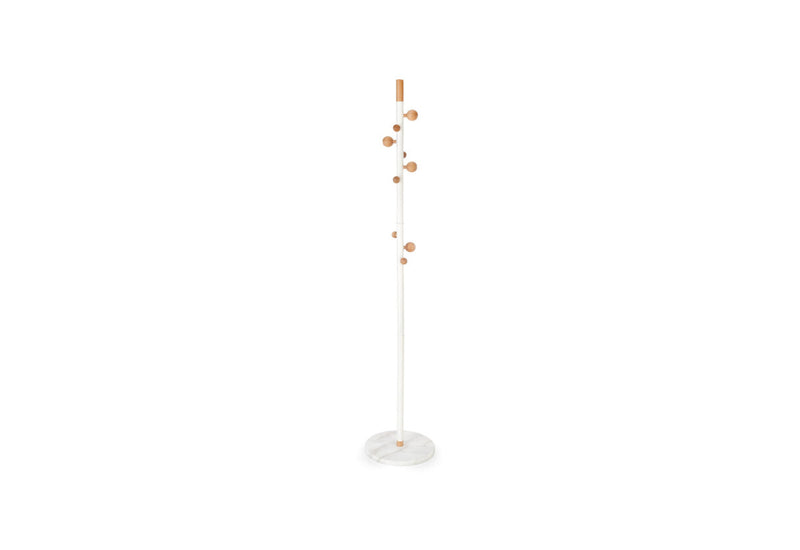 Stojanový vešiak ZACH. Praktický vešiak moderného štýlu vo farebnej kombinácii bielej a prírodnej hnedej farby. Vyrobený je z kovu a masívu. Okrúhly pevný podstavec zaistí vešiaku stabilitu. Vďaka svojej praktickosti a jednoduchému spracovaniu poslúži nielen v predsieniach, ale aj v kanceláriách či čakárňach.