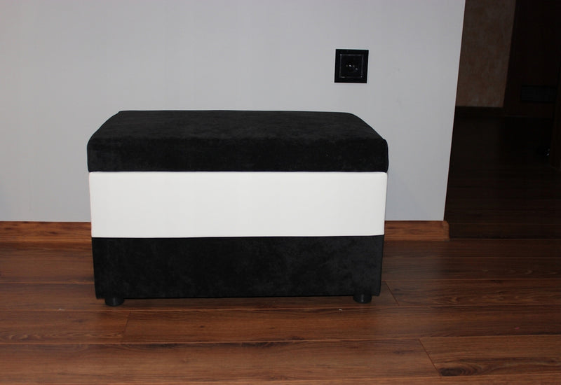 Taburet HENRY. Spojte príjemné s užitočným. Pevnú konštrukciu tvorí kvalitné lamino, ktoré je čalúnené látkou v kombinácii s elegantnou ekokožou. Vyberať si môžete z viacerých farebných dekorov čalúnenia. Súčasťou taburetu sú elegantné krátke plastové nožičky v čiernej farbe. Maximálne pohodlie počas sedenia je zabezpečené výplňou z PUR peny. Taburet poslúži ako ďalšie sedacie miesto vo vašej obývačke. Obrovskou výhodou taburetu je úložný priestor.