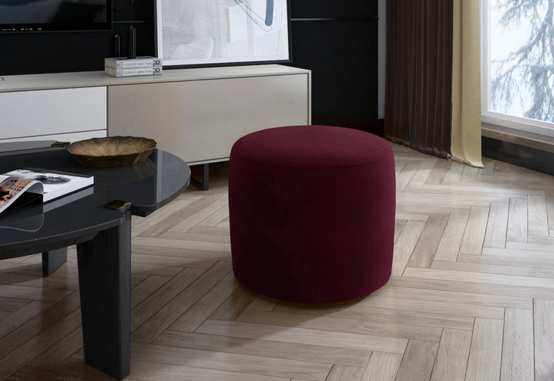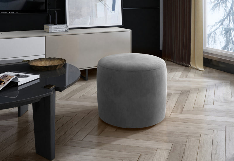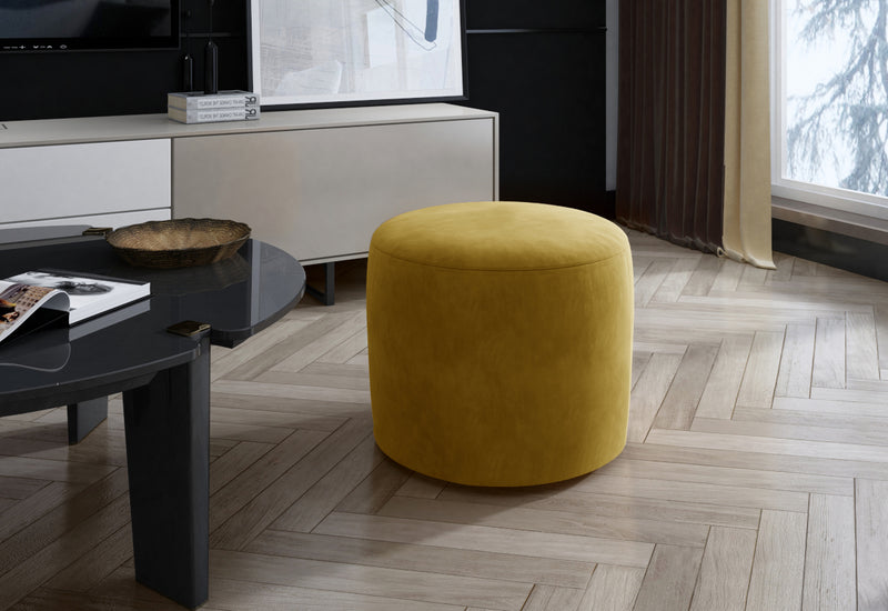 Taburet LINDSY. Jednoduché línie a guľatý tvar využijete v každom interiéri. Taburet je potiahnutý jemnou látkou a vyplnený HR penou. Vďaka tomu vám poslúži ako pohodlná opierka pod nohy alebo miesto na sedenie. Voľba poťahových materiálov.