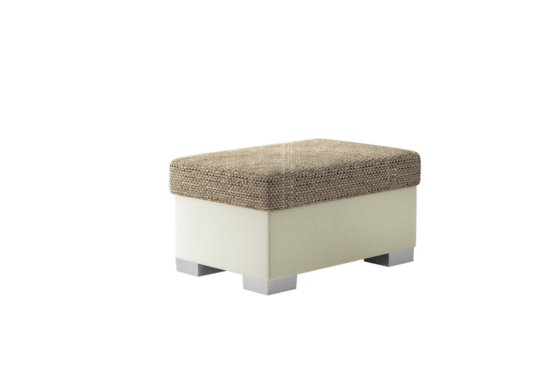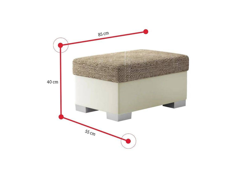 Taburet SLOT R4. Vďaka svojmu obdĺžnikovému tvaru sa dá použiť ako pohodlná sedacia plocha. Pevná konštrukcia je potiahnutá na hornej časti látkou a boky sú zas potiahnuté ekokožou. Táto kombinácia vyzerá elegantne a vkusne. Maximálne pohodlie vám zaistí výplň penou T25, ktorá je dostatočne mäkká a flexibilná. Vyberať si môžete z niekoľkých kombinácií dekorov.