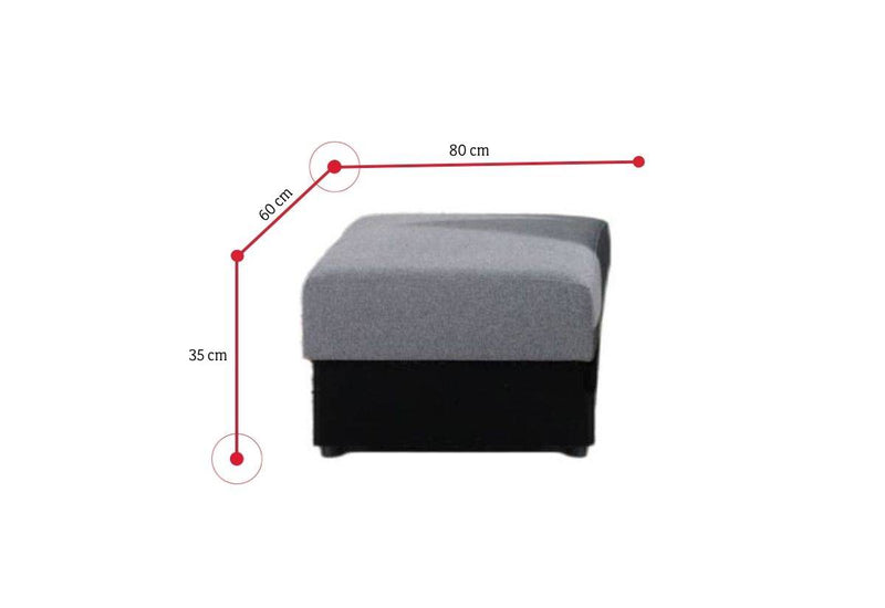 Taburet WELL. Dokáže spoločne s rohovou sedacou súpravou WELL vytvoriť veľkú spaciu plochu. Samostatne ho využijete ako veľké sedacie miesto. Obrovskou výhodou je úložný priestor. Konštrukciu tvorí kombinácia mäkkého a tvrdého dreva, ktorá je stabilná a pevná. Taburet je potiahnutý látkou v kombinácii s ekokožou. Vyberať si môžete z viacerých farebných prevedení.