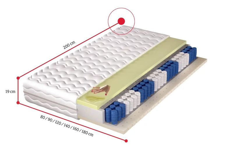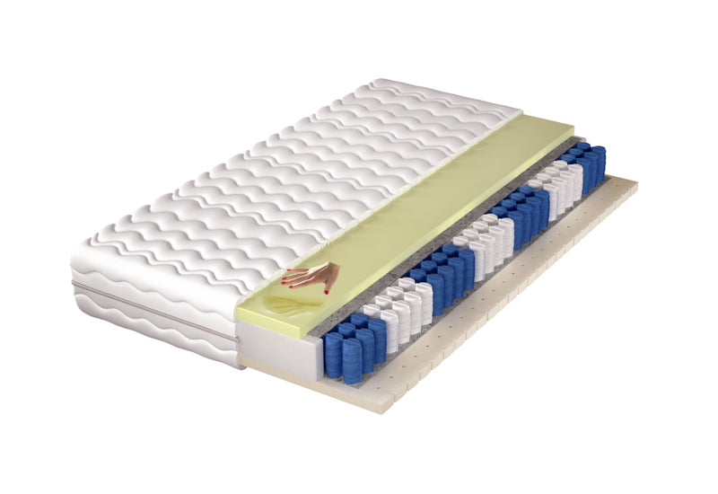 Taštičkový matrac SASKIA je vyrobený z taštičkových a Multipocket pružín, ktoré sú usporiadané tak, aby dopriali rovnomernú oporu celému telu. Jedna strana matraca je zo 100% prírodnej bavlny. Tá sa využíva v teplých mesiacoch. Druhá strana je z ovčej vlny a tá sa zas naopak využíva pre svoje vlastnosti predovšetkým v mesiacoch zimných. Jej výhodou je, že výborne absorbuje pot a udržuje telesnú teplotu. Matrac s výškou 18 cm vrátane poťahu je hypoalergénny. Súčasťou je prací poťah leto/zima.