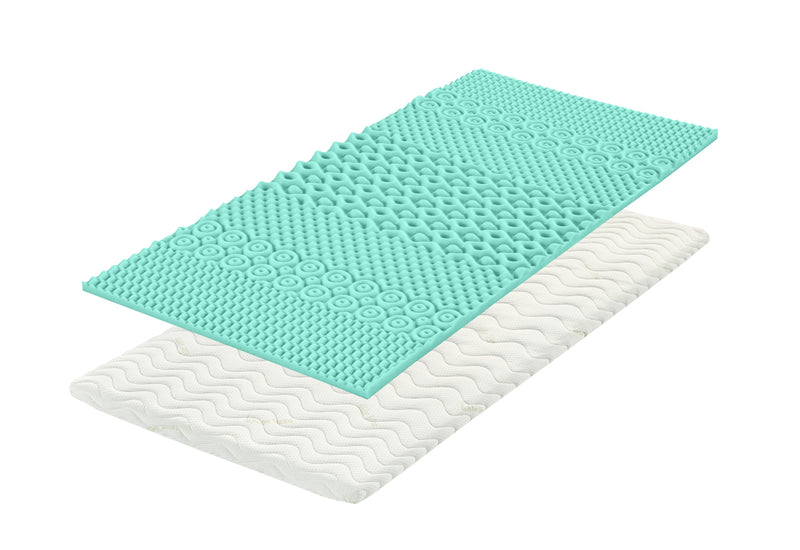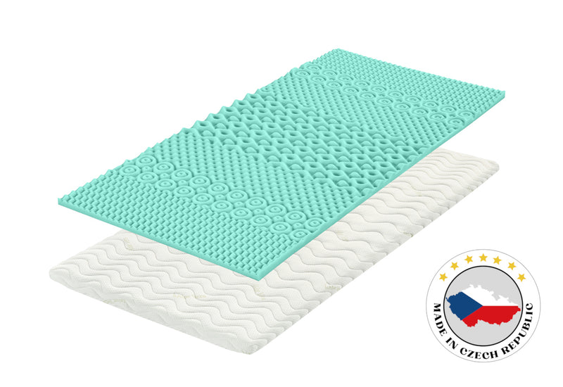 Topper z pamäťovej peny GALAXY. Topper alebo chránič matraca je skvelý na vylepšenie vlastností používaného matraca a to pokiaľ vám nevyhovuje tvrdosť, výška alebo ak chcete zlepšiť hygienu v lôžku, tak obstaraním toppera môžete tieto vlastnosti zlepšiť. Vrchný krycí matrac z pamäťovej peny Visco bez prístupu vákuovo tvarovanej strednej tuhosti, v poťahu ALOE VERA s gumovými pásikmi pre jednoduché uchytenie aj k vysokým matracom. Snímateľný poťah na zips je obojstranne prešívaný klimatizačnou vrstvou dutého vlákna, prateľný na 60 °C. Topper je 7 cm vysoký vrátane poťahu.