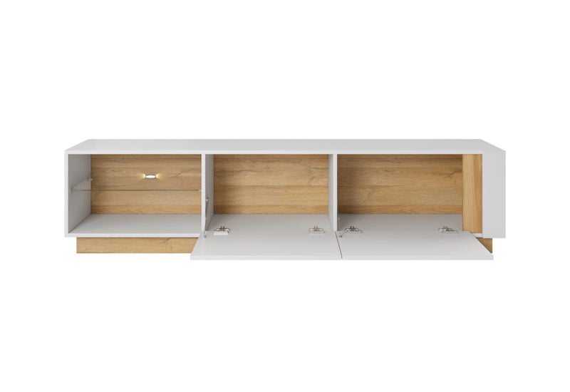 TV stolík ARMONA. Vyrobený je z kvalitného materiálu, ktorý je opatrený je ABS hranami. Tie chránia pred mechanickým poškodením a vlhkosťou. TV stolík poskytuje dostatok úložného priestoru v podobe dvoch skriniek a otvorených políc. Na otváranie slúži obľúbený systém PUSH TO OPEN. Korpus pri bielom dekore je v matnom prevedení, zatiaľ čo predná strana v lesku. Kombinovať môžete s ďalšími produktmi z radu ARMONA. Možnosť výberu z dvoch dekorov.