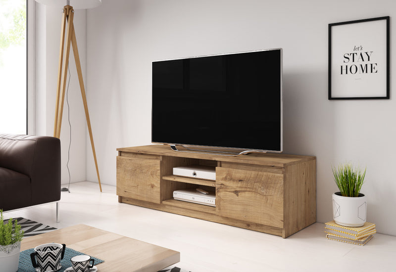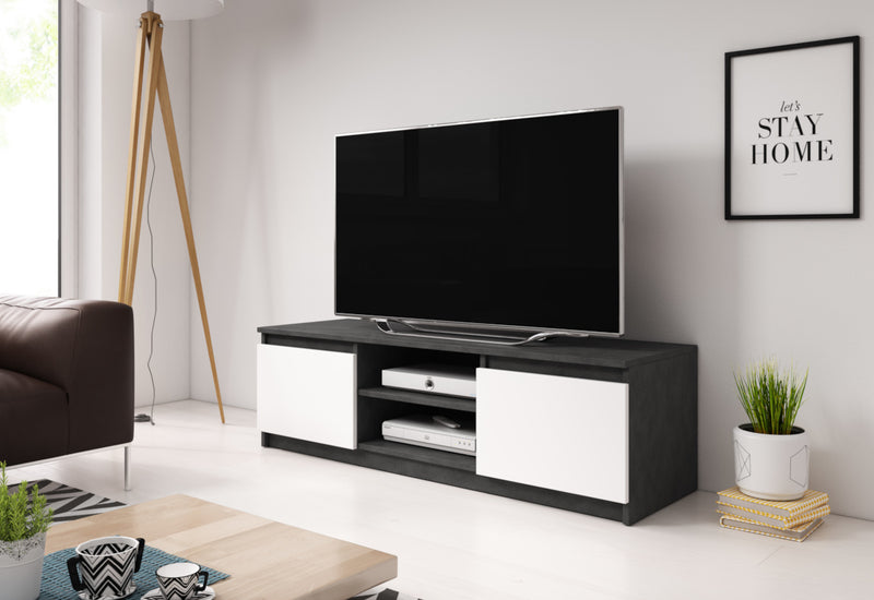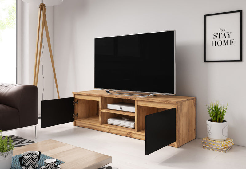 TV stolík BASTE. Zaujme jednoduchým spracovaním v modernom štýle. Ponúka úložný priestor v podobe dvoch uzatvárateľných skriniek a dvoch otvorených poličiek. Vyrobené z LTD dosky s ABS hranou, ktorá chráni proti mechanickému poškodeniu a vniknutiu vlhkosti. Vybrať je možné z niekoľkých dekorov. Voľba LED osvetlenia.