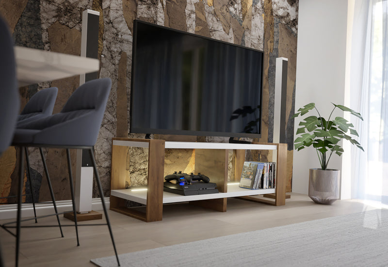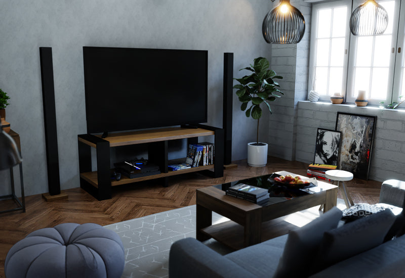 TV stolík BRANO. Zaujme svojím originálnym spracovaním v industriálnom štýle. Kvalitný materiál a kovová konštrukcia zaistí stabilitu a pevnosť. Vďaka otvorenej poličke pôsobí ľahko a vzdušne. Vybrať si môžete z dvoch farebných dekorov s možnosťou dokúpenia LED osvetlenia.