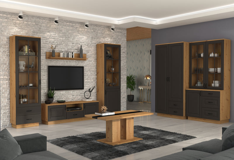 TV stolík FLAVELA. Poskytuje funkčné a praktické využitie v škandinávskom štýle. Vyrobený je z kvalitného materiálu s hrúbkou 1,6 cm. Úložný priestor je rozdelený do dvoch skriniek, medzi ktorými sa nachádza otvorená polica a zásuvka. TV stolík je opatrený jemnými kovovými úchytmi pre ľahšiu manipuláciu. Vybrať môžete z viacerých dekorov. Doporučujeme kombinovať s ďalšími produktmi z radu FLAVELA.