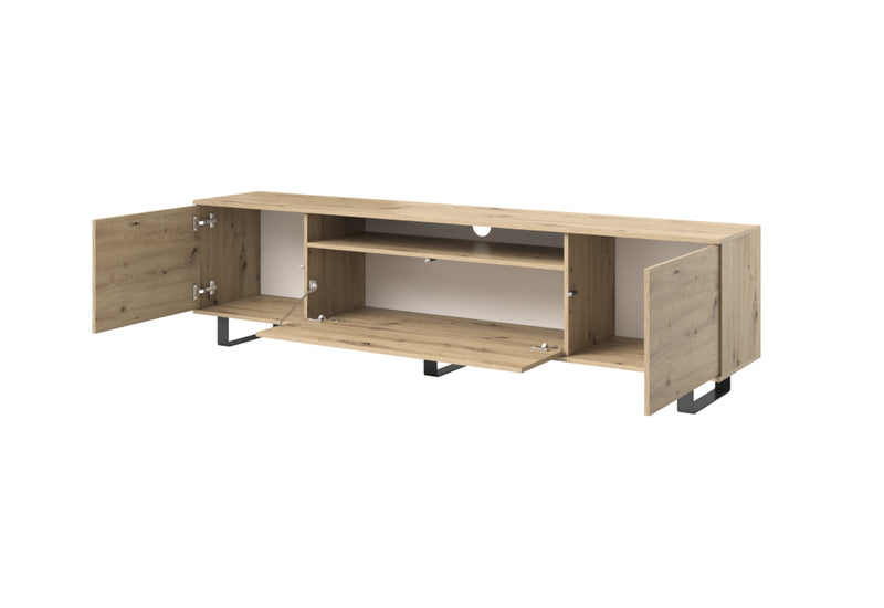 TV stolík GALA. Vyrobený je z kvalitného materiálu s hrúbkou 1,6 cm s ABS hranou, ktorá chráni materiál pred mechanickým poškodením a vlhkosťou. TV stolík sa skladá z troch častí, ktoré vytvárajú dostatok úložného priestoru. Prostredné dvierka sú vyklápacie. Dvierka skriniek sú bez úchytov. Stojí na vyšších kovových nožičkách v čiernej farbe. Možnosť výberu z viacerých dekorov.