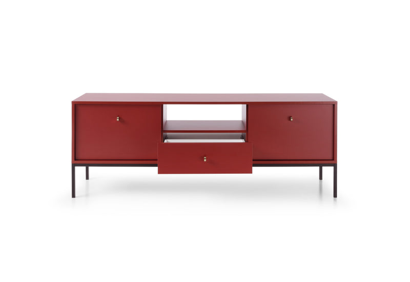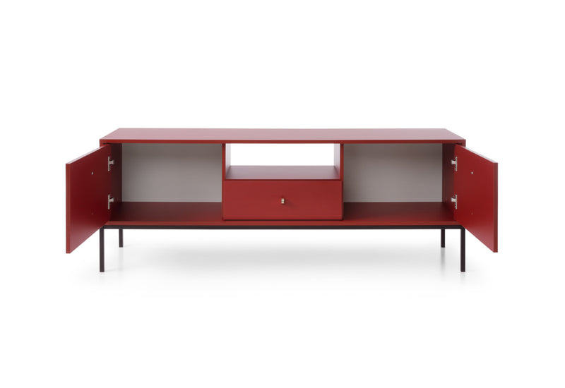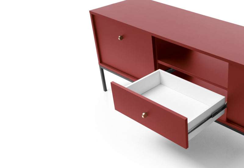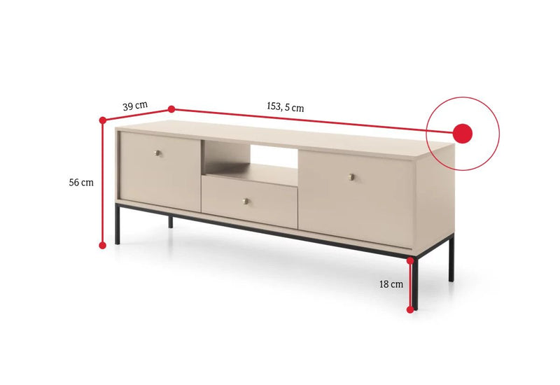 TV stolík NANO. Moderný štýlový TV stolík je vyrobený z kvalitného materiálu s hrúbkou 1,6 cm s ABS hranami. Chraní tak materiál pred mechanickým poškodením a vlhkosťou. Súčasťou je úložný priestor v podobe dvoch skriniek s dvierkami a otvorenej police, pod ktorou sa nachádza šuplík. Vybavený je úchytmi v zlatej farbe pre ľahšiu manipuláciu. Stojí na vysokých kovových nohách v čiernej farbe pre väčšiu stabilitu a vzdušnosť. Možnosť výberu z viacerých farebných prevedení. K dispozícii sú aj ďalšie produkty z rovnakého radu NANO.