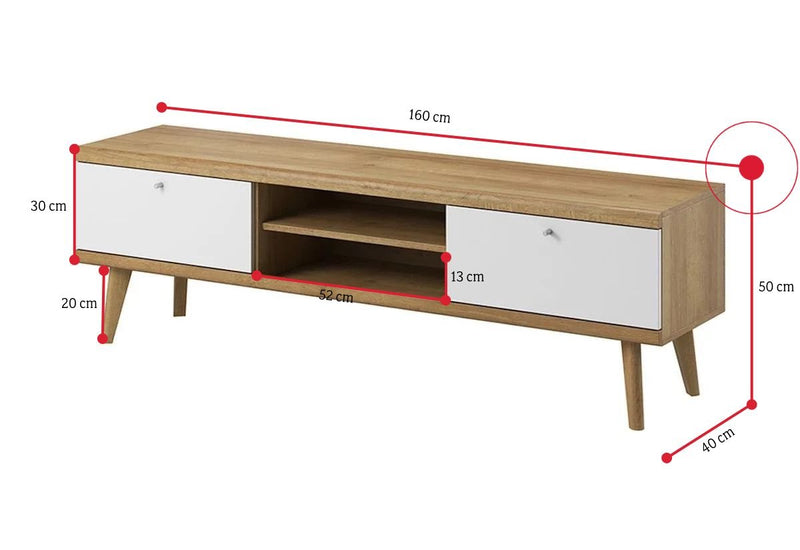 TV stolík PORT PRTV160 je vyrobený z kvalitného materiálu, ktorého hrany sú vybavené ABS lištami. Tie chránia pred mechanickým poškodením a vlhkosťou. Na stranách stolíku sú dve skrinky s vyklápacími dvierkami, medzi nimi dve otvorené police. Stolík stojí na stabilných nožičkách v prírodnom dekoru. Horná plocha poskytuje dostatok priestoru pre umiestnenie televízie.