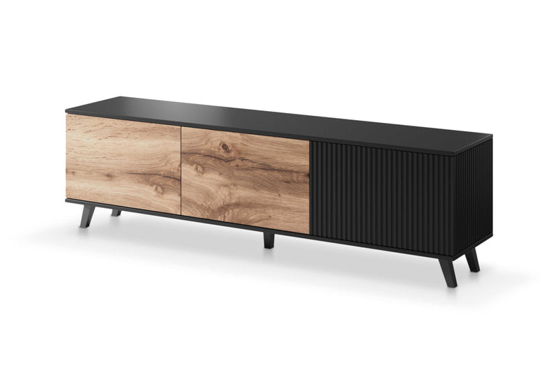 TV stolík RADON. Elegantný moderný TV stolík vyrobený z kvalitnej dosky. Vďaka zaujímavému dizajnu sa TV stolík ľahko stane dominantou každého obývacieho priestoru. TV stolík stojí na stabilných vyšších nožičkách. Možnosť výberu veľkosti. Odporúčame kombinovať s ďalšími produktmi z radu RADON.