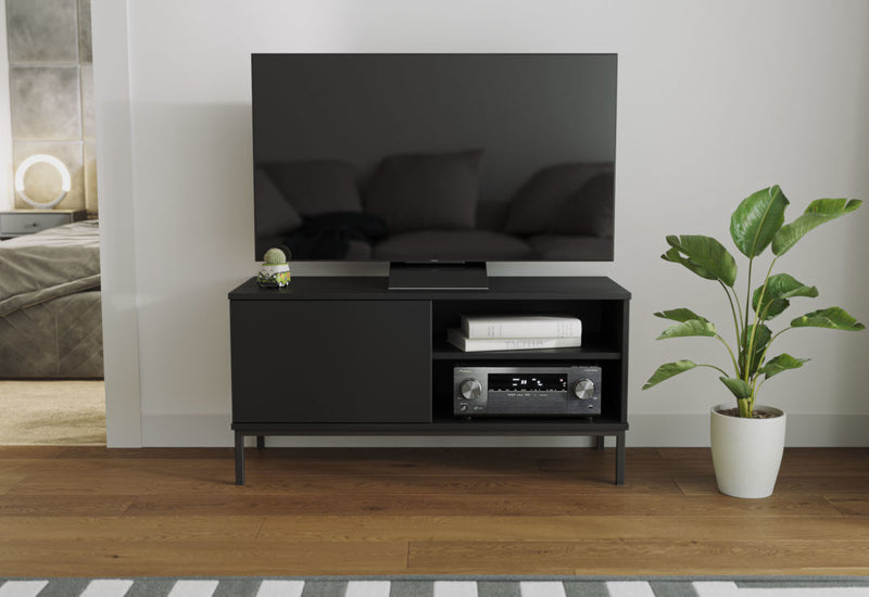TV stolík ZOJA. Moderný vzhľad s jednoduchým dizajnom. Stolík ponúka dostatok úložného priestoru v podobe dvoch hlbokých zásuviek a jednej skrinky. Dvierka skrinky nemajú úchytky, otvárajú sa pomocou systému PUSH TO OPEN. Televízny stolík stojí na vyšších kovových nohách, ktoré dodajú stabilitu a pevnosť. Možnosť voľby dekoru.