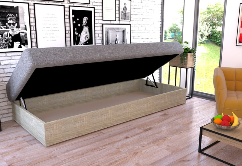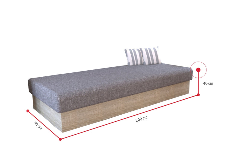 Váľanda KONRADOS. Rovné línie váľandy ľahko zladíte s vašou izbou. Konštrukcia je vyrobená z kvalitného materiálu. Tým je zaručená pevnosť a stabilita. Sedacia časť je vyrobená z PUR peny T28 s bonellovými pružinami a je potiahnutá príjemnou a odolnou látkou. Pod spacou plochou sa nachádza úložný priestor.