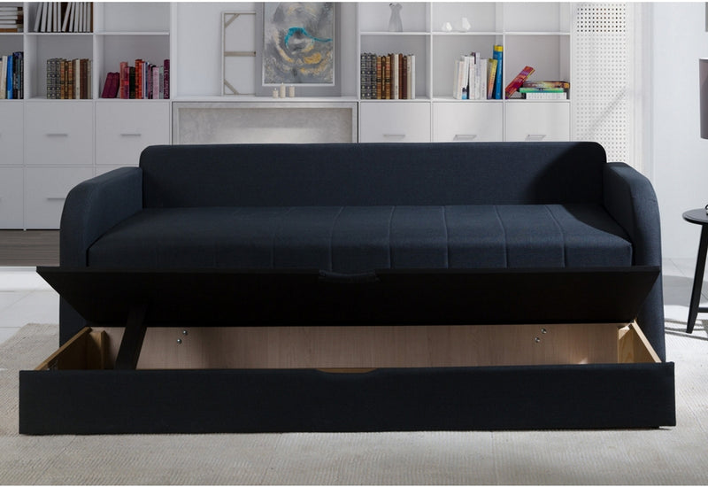 Váľanda MICHEL B. Jednoduché moderné línie. Rám je tvorený z dreva pre stabilitu a pevnosť. Komfort počas sedenia zaručí výplň z PUR peny. Zaoblené tvary, snímateľné vankúše a chrómované nožičky. Spaciu plochu možno nachystať jednoduchým pohybom behom okamihu. Úložný priestor. Možnosť výberu poťahových látok.