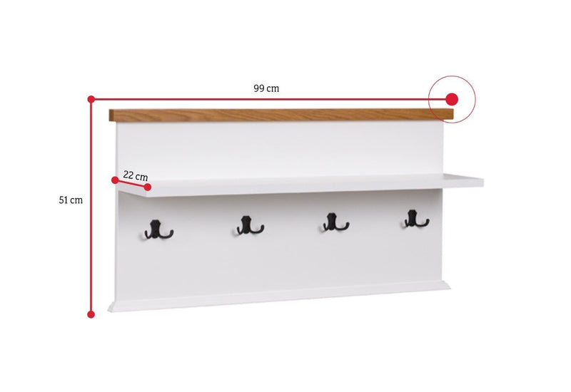 Vešiak GALON. Vyrobený je z pevného materiálu, ktoré je vybavené ABS hranami. Tie chránia materiál pred mechanickým poškodením a vlhkosťou. Disponuje priestorom so šatňovými háčikmi a odkladacou poličkou. Vyberať môžete z viacerých dekorov.
