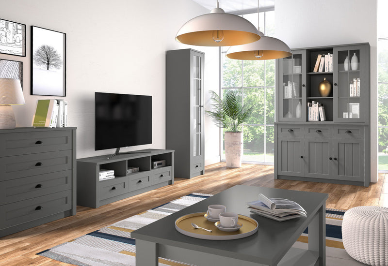 Vitrína PRESS W2S. Je vyrobená z kvalitného materiálu. Súčasťou vitríny sú tri police schované za presklenými dvierkami. V spodnej časti sa nachádzajú dve malé zásuvky. Dvierka i zásuvky sú vybavené kovovými úchytkami, ktoré podčiarkujú rustikálny štýl celej vitríny. Praktickou dvojdverovú vitrínu vo vidieckom štýle ľahko skombinujete s interiérom spálne či obývačky.