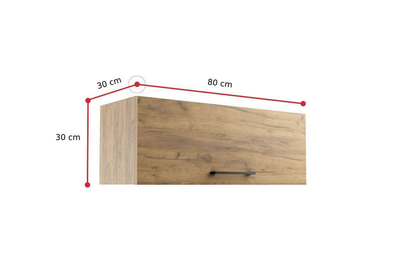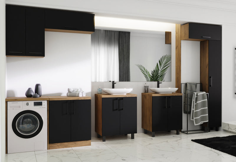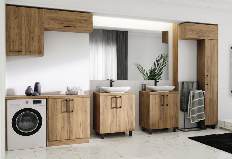 Závesná kúpeľňová skrinka TAVAZ. Je vyrobená z kvalitného materiálu o sile 1,8 cm. Pevná konštrukcia z kvalitnej dosky zaistí stabilitu a odolnosť proti poškodeniu. Skrinka poskytuje dostatok úložného priestoru v podobe jednej police. Dvierka majú čierny úchyt a otvárajú sa za pomoci plynových pružín. Na výber z viacerých dekorov.