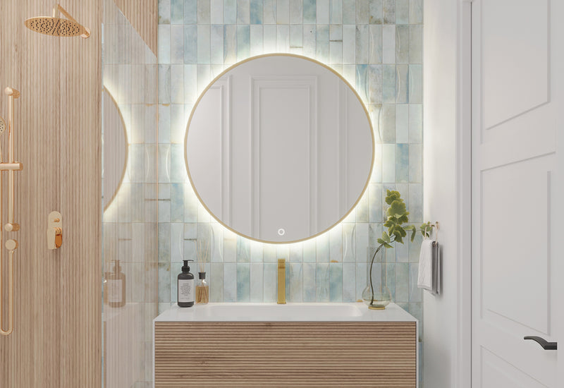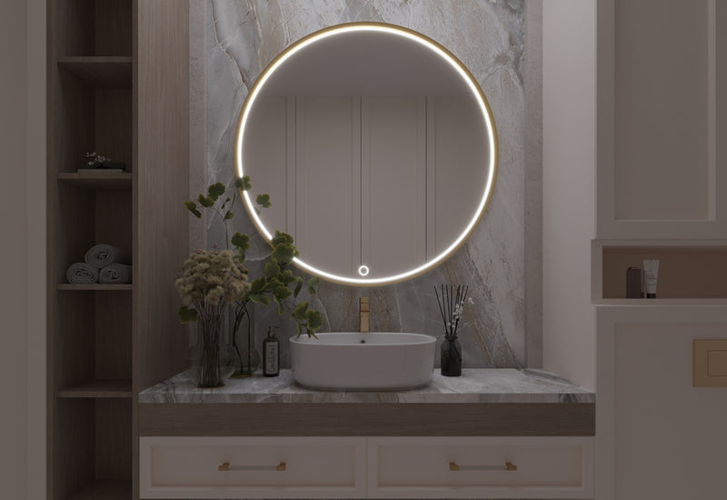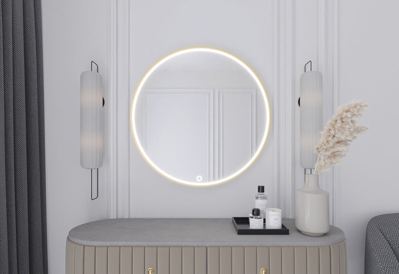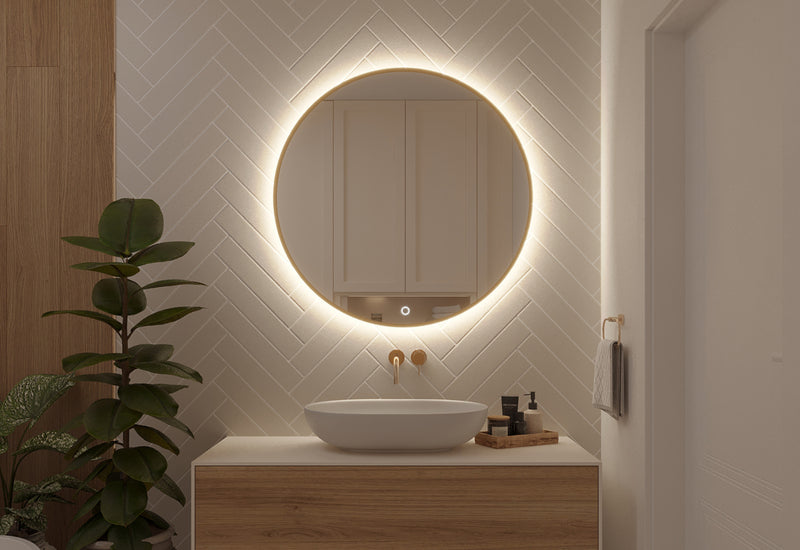 Zrkadlo BiNIE 2. Moderné nástenné zrkadlo. Vďaka kvalitnému materiálu a spracovaniu sa jedná o stabilné a odolné zrkadlo. Je vybavené LED osvetlením, ktoré poskytuje rovnomerné a príjemné osvetlenie. Štýlový elegantný dizajn v podobe okrúhleho tvaru s orámovaním v zlatej farbe zapadne do každého interiéru. Nízka hmotnosť zaistí ľahkú manipuláciu. Výber z viacerých rozmerov a typu LED osvetlenia. Typ A - podsvietené zrkadlo. Typ B - LED osvetlenie zabudované v orámovaní zrkadla.