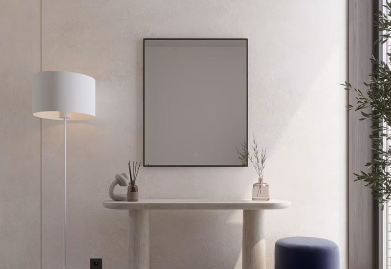 Zrkadlo VIXES. Moderné nástenné zrkadlo. Vďaka kvalitnému materiálu a spracovaniu sa jedná o stabilné a odolné zrkadlo. Je vybavené LED osvetlením, ktoré poskytuje rovnomerné a príjemné osvetlenie. Dizajn v podobe štvorcového tvaru s orámovaním v čiernej farbe zapadne do každého interiéru. Nízka hmotnosť zaistí ľahkú manipuláciu.